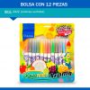 Marcadores base agua y no tóxicos, lavable, disponible en 12 colores intensos y divertidos con aromas agradables, punto fino y barril triangular. Son ideales para uso infantil, artes gráficas, creatividad y manualidades.