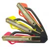 Fabricado con material reciclable, diseño ergonómico, grip, guía para corte y mecanismo de seguridad; su navaja es intercambiable, de acero inoxidable y pre-cortada. Ideales para cortar papel, cartoncillo y plástico.