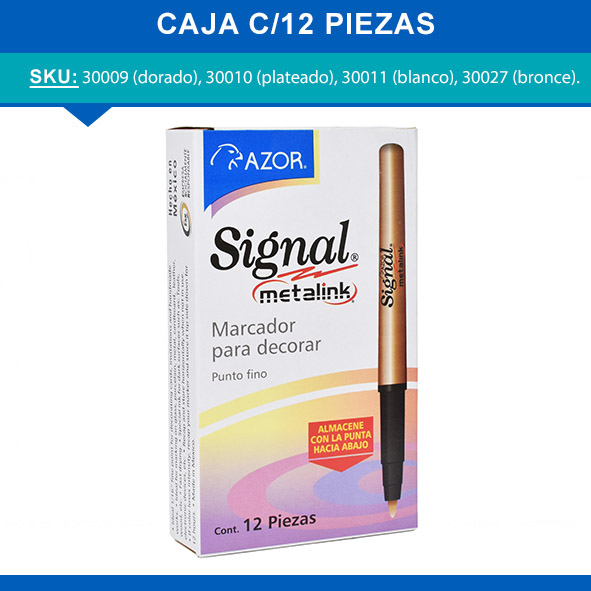 Marcadores permanentes de tinta metalizada que marcan sobre superficies claras y oscuras, punto fino de bala, disponible en 4 brillantes colores. Son ideales para utilizar en tarjetería, decoración, manualidades (cerámica, metal, papel, tela, etc), diseño, etc.