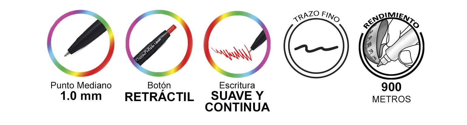 Bolígrafo Punto mediano de 1.0 mm. de carburo de tungsteno y tinta de baja viscosidad para una escritura más fluida y suave. Su sistema retráctil protege la punta sin necesidad de tapa y evita rayones al usarse solo cuando se requiere.