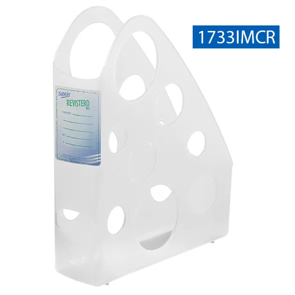 Inicio / Línea Sablón / Revisteros / Revistero IBEX IMC Revistero IBEX IMC Categorías: Línea Sablón, Revisteros Descripción Descripción Con diseño innovador. Variedad de colores. Tamaño carta. Con etiqueta identificadora en el lomo. Con ojillo en el lomo para facilitar su manejo. Fabricado en polipropileno (material reciclable). Productos relacionados Revistero SencilloLeer más Revistero JumboLeer más Revistero SablónLeer más Revistero Sablón PlusLeer más