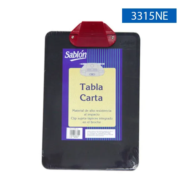 Inicio / Línea Sablón / Tablas de apoyo / Tabla con Broche de Plástico Tabla con Broche de Plástico Categorías: Línea Sablón, Tablas de apoyo Descripción Descripción Tabla de apoyo con resistente broche de plástico que sostiene lápiz o bolígrafo. Tamaño carta y oficio. Productos relacionados Tabla de Aluminio con Clip MetálicoLeer más Tabla con Clip MetálicoLeer más Tabla de Aluminio con I-ClipLeer más