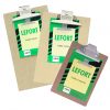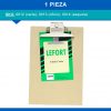 Tabla de fibracel para apoyo con broche metálico tipo clip con perforación para colgar, en 3 tamaños diferentes: esquela, carta y oficio.